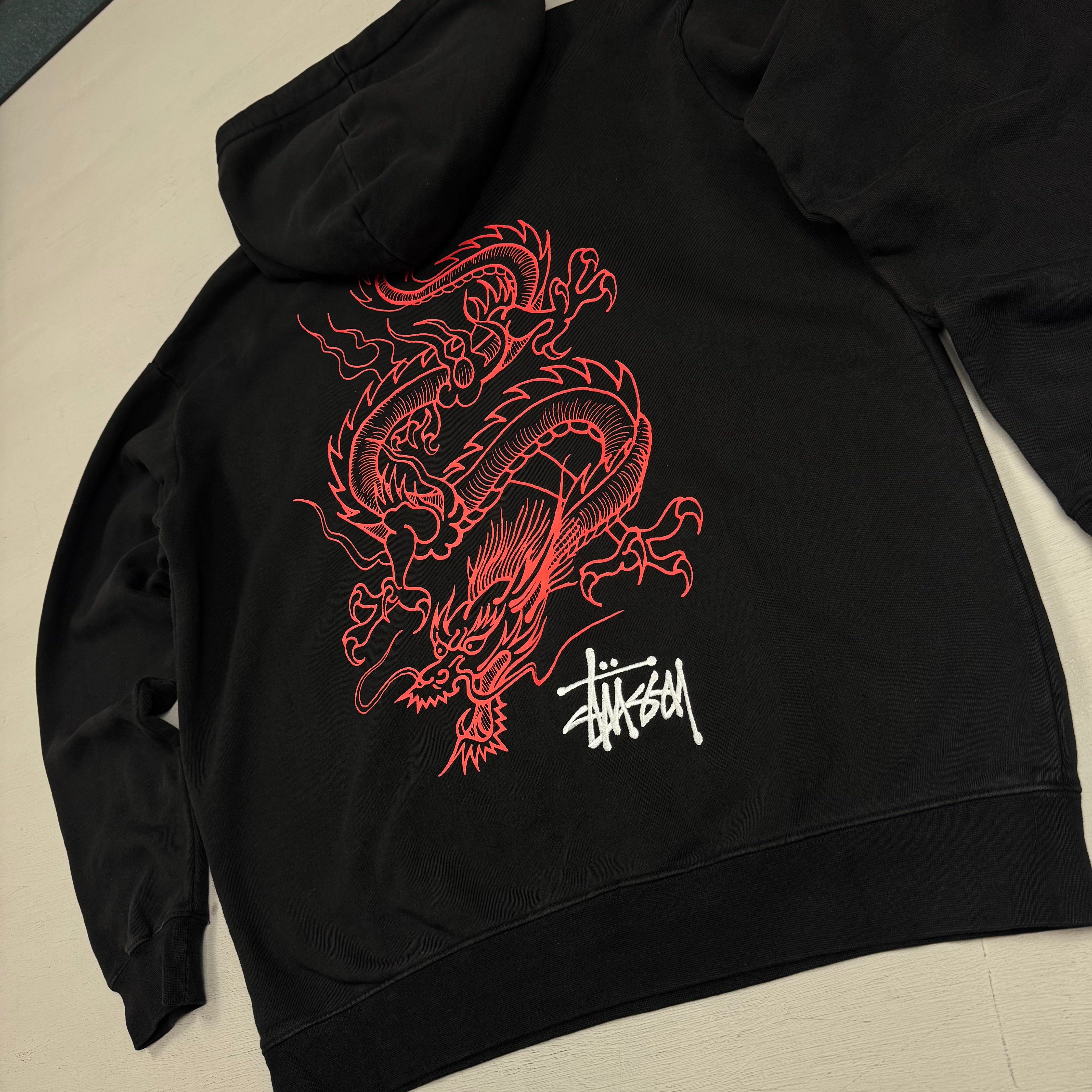 Stüssy Black Embroidered Dragon Hoodie