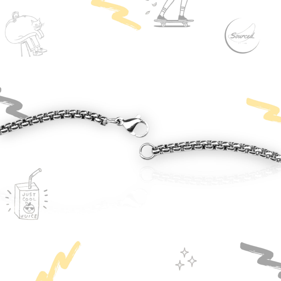Our jewellery is made using stainless steel that has been recycled from other sources and can be recycled to make new products in the future.